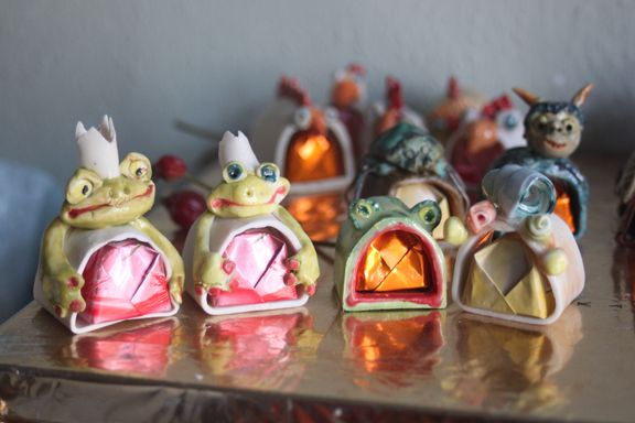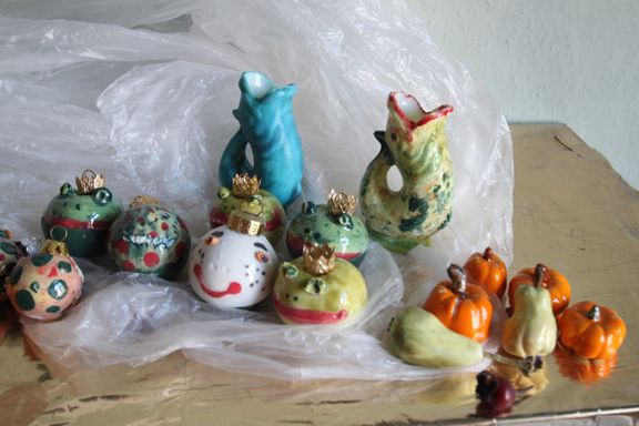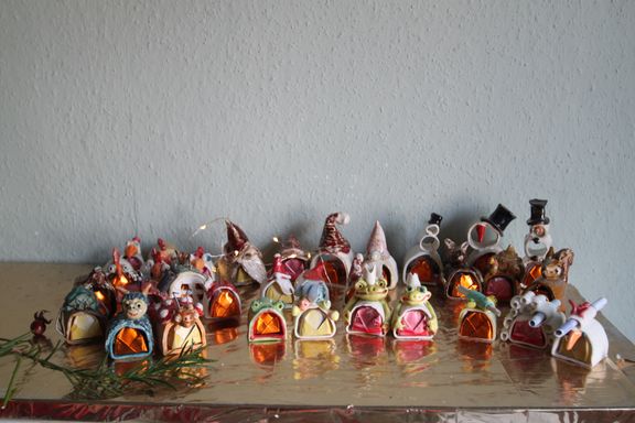Äpfel, komische Kugeln, die Weihnachtsgurke, Hagebutten, Findus, Maulwurf &co., winzige Häuschen, Zaubernüsse, Eicheln aus Porzellan